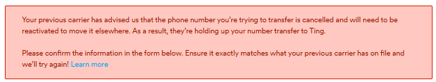 When you submit a request to transfer your number to Ting, we send the details you provide to your current carrier for approval. They’ll review the request to ensure all the information matches their records. If the transfer is approved, they’ll begin moving your number to Ting.