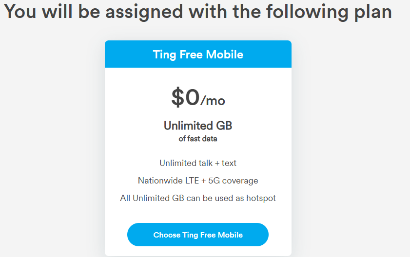 7. Select your free Ting plan! Select Choose Ting Free Mobile.