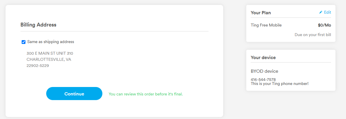 14. You're all set! Welcome to Ting's $0 Unlimited Plan!