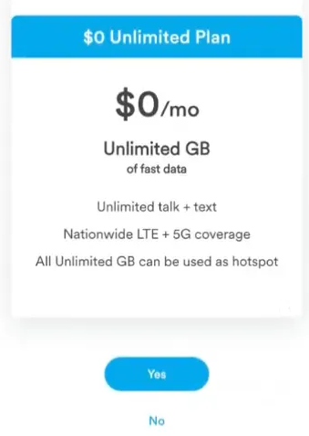 4. You’ll see the option to switch to the $0/month unlimited plan. Select Yes to confirm.
