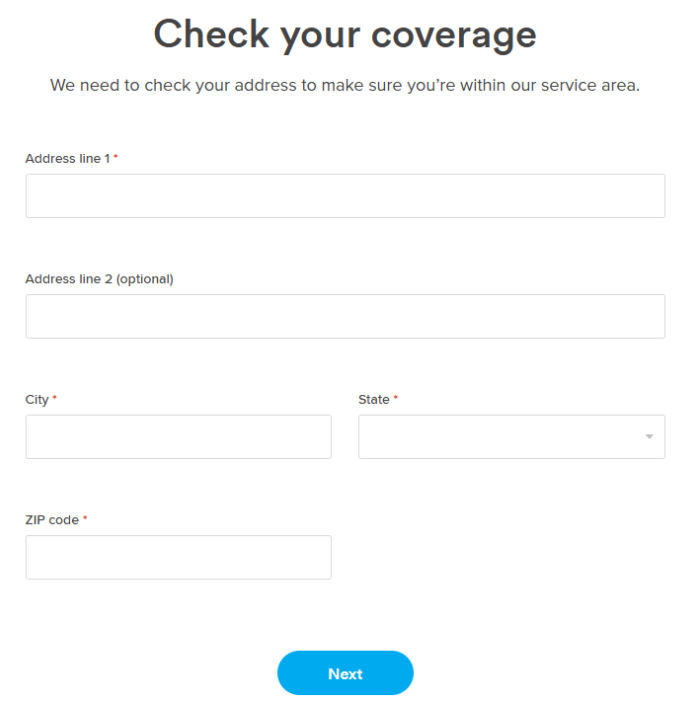 - Enter your home address to confirm Ting service is available in your area. Select Next.