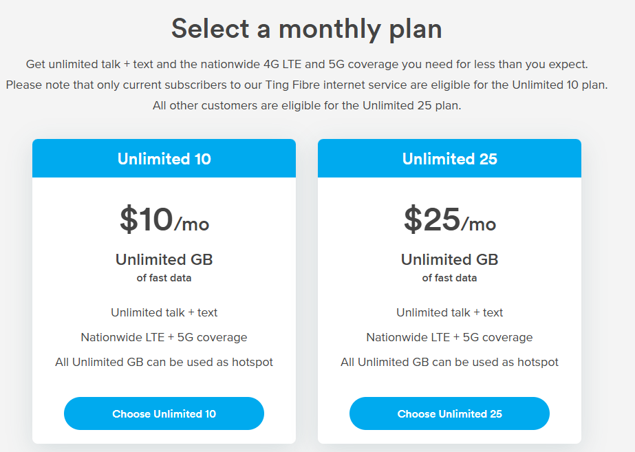 - If you live in a Ting Town without Ting Internet, choose the $25 plan.