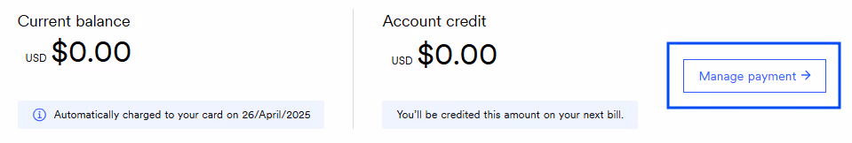2. From your Account overview, click Manage payment.