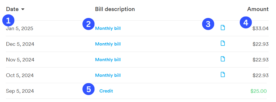 The date your billing cycle ended and the bill was generated. - Monthly bill: